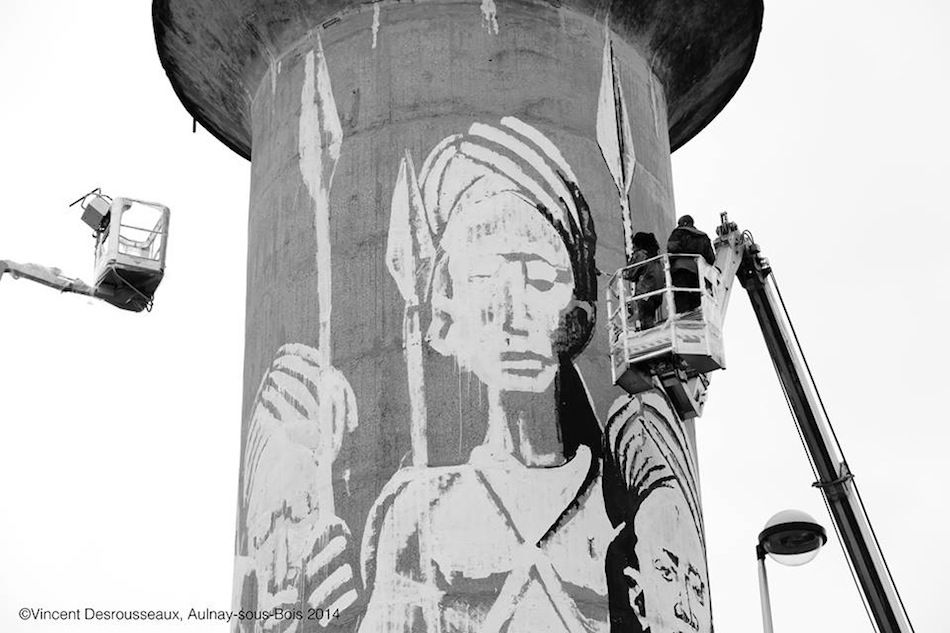 "Guerriers Bantu", Château d'eau d'Aulnay-sous-Bois ©Vincent Desrousseaux, 2014